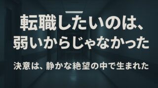「転職したいのは、自分が我慢できない人間だからなんじゃないか」そうやって、何度も自分を責めていませんか?私も同じでした。辞めたい理由があっても、「逃げているだけでは?」という声が、ずっと頭の中にありました。でも私は、あるクリスマスイブの夜に...
