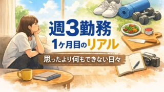 勤務日を減らして1ヶ月。時間は増えたけど思ったより忙しい—そんなリアルな感想と、小さく変わった生活について正直に書きました。